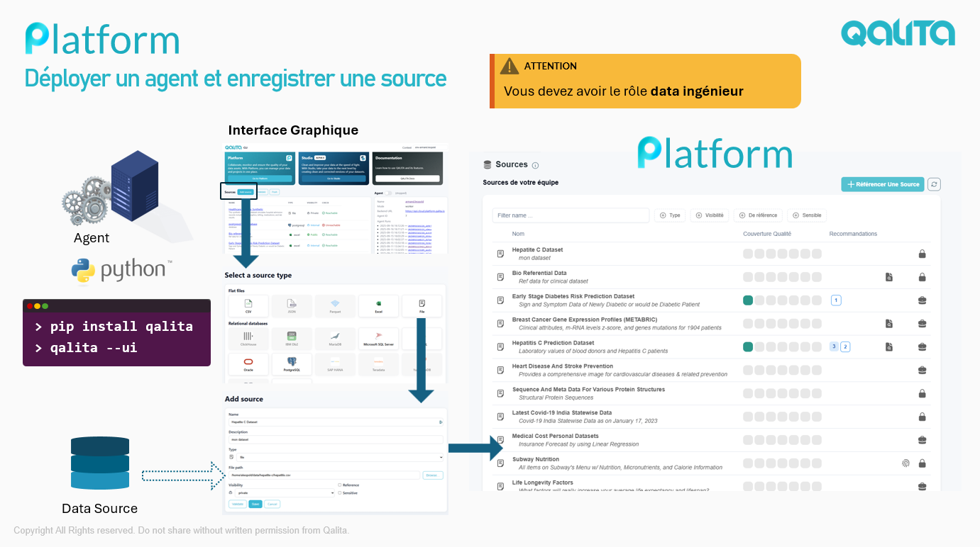 Avec Platform comme socle solide et Studio comme interface exploratoire et collaborative, QALITA offre un écosystème complet et innovant pour faire de la qualité des données un réflexe au quotidien.